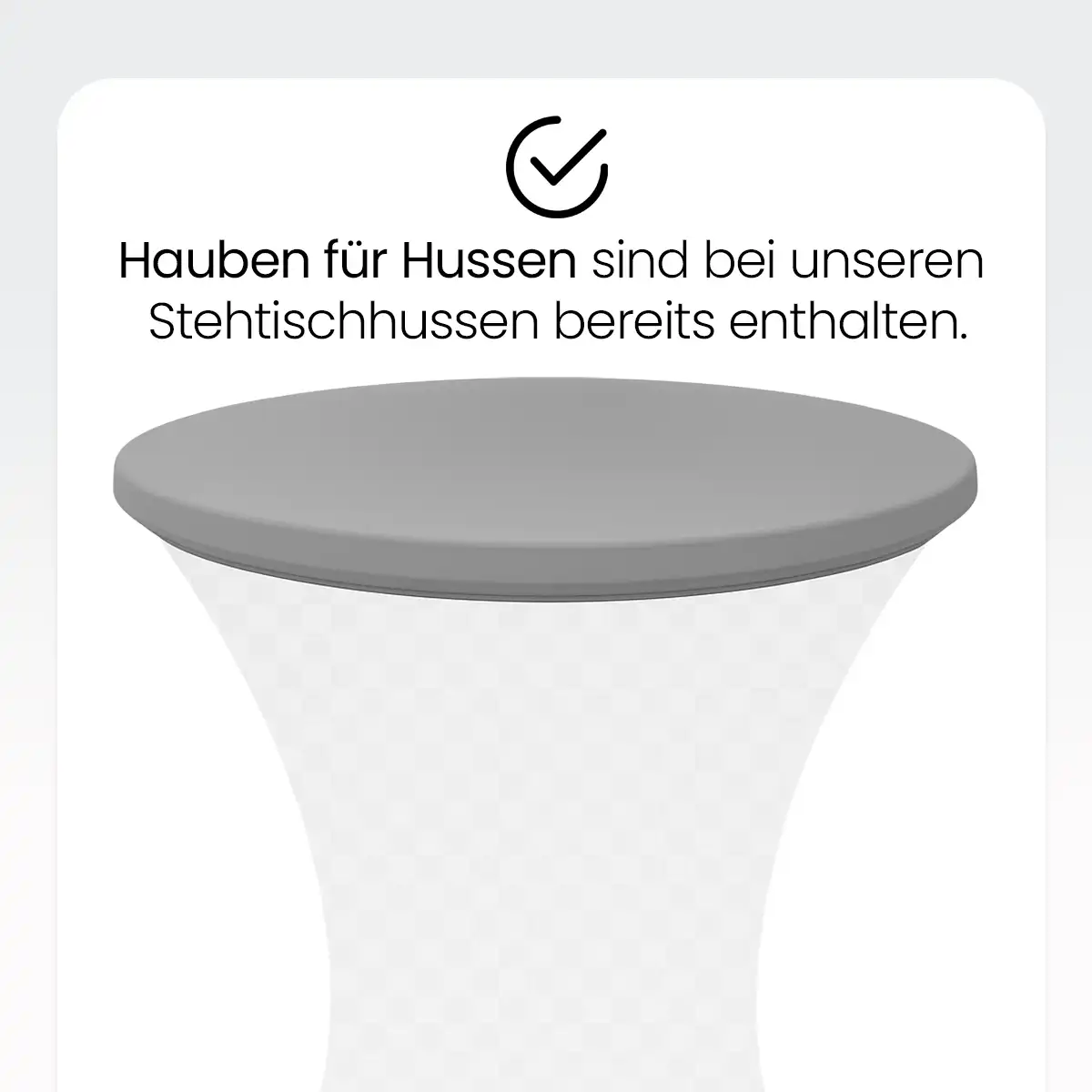 Hauben für Hussen sind bei unseren Stehtischhussen bereits enthalten.
