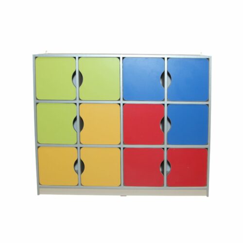 MOZAIKA Regal – bunt, sicher & vielseitig. Ideal zur Aufbewahrung von Schuhen, Schulmaterial & persönlichen Dingen im Kita-Alltag.