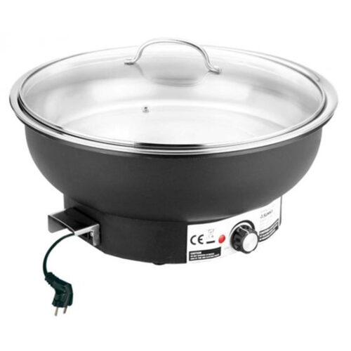 - Speisenbehälter: Der Elektro-Chafing Dish verfügt über einen Speisenbehälter mit einer Füllmenge von 6,8 Litern, der ausreichend Platz für Ihre Gerichte bietet.