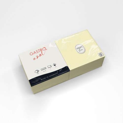 Gastro Uzal Zelltuchservietten Butter Cream 33 x 33 cm, 1/4 Falzung 1500 Stück (2-lagig)