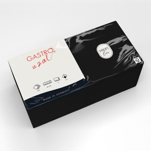 Gastro Uzal Zelltuchservietten Midnight Black 40 x 40 cm 1/4 Falzung 1000 Stück (3-lagig)