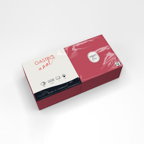 Entdecken Sie hochwertige Zelltuchservietten in Bordeauxrot. 33 x 33 cm, 2-lagig mit 1/4 Falzung. 1500 Stück in 6 Packungen à 250 Stück. Ideal für alle Anlässe.