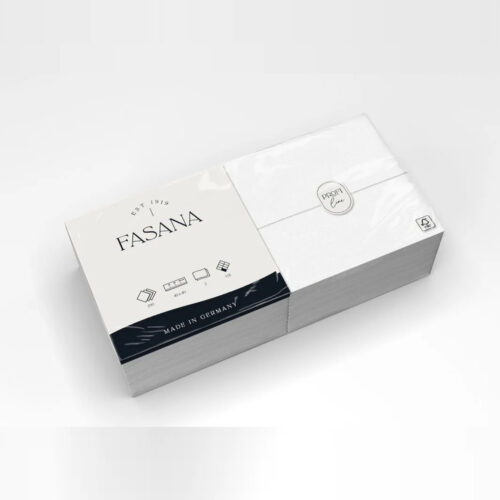 Hochwertige 3-lagige Zelltuchservietten in Pearl White, 33 x 33 cm Größe mit 1/8 Falzung. Ein Set enthält 1000 Stück in 4 Packungen zu je 250 Stück.