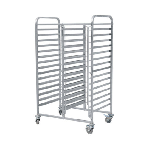 Beschreibung: Der Tablettwagen mit den Maßen 790 x 550 x 1730 mm ist die ideale Lösung für den professionellen Gastronomiebetrieb. Dieser Tablettwagen ist für GN 1/1 Behälter geeignet und verfügt über insgesamt 30 Schienen, um Ihre Speisen effizient zu transportieren.